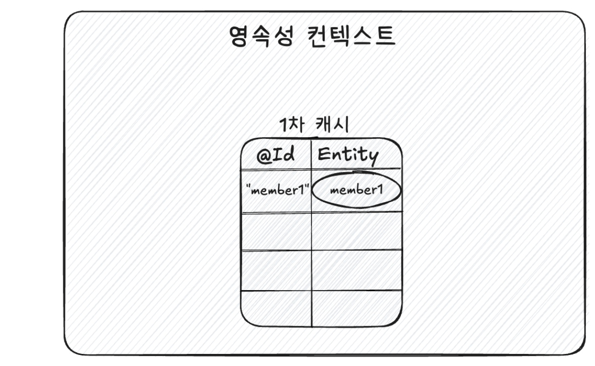영속성 컨텍스트는 내부에 엔티티를 저장할 수 있는 캐시를 가지고 있는데 이를 1차 캐시라고 한다. 엔티티를 처음 영속성 컨텍스트에 저장하면(영속 상태로 만들면) 1차 캐시에 엔티티가 저장된다.